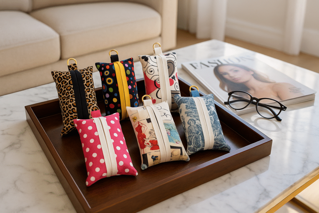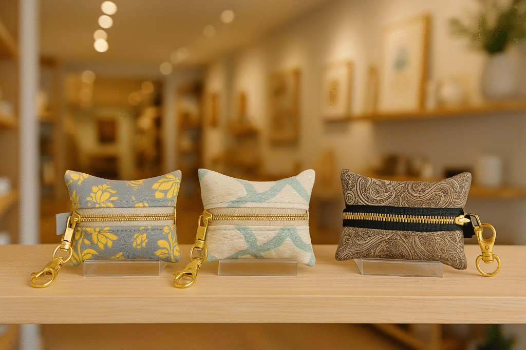 I create all items myself in my home studio. Many are constructed from remnants, rescued items or upcycled materials.